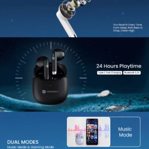• 24-Hour Playtime & Type-C Charging: Enjoy uninterrupted playback of up to 24 hours on a single charge. With just a 10-minute charge, get a playtime of 120 minutes. Rapid charge the earbuds using the included Type-C cable.